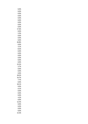 0.0% 33.3% 0.0% 0.0% 0.0% 0.0% 33.6% 0.0% 0.0% 0.0% 0.0% 0.0% 0.0% 11.8% 0.0% 17.9% 0.0% 0.0% 0.0% 40.0% 0.0% 27.4% 0.0% 15.0% 10.0% 0.0% 0.0% 25.0% 7.1% 0.0% 0.0% 0.0% 25.2% 0.0% 0.0% 0.0% 11.1% 0.0% 0.0% 8.3% 0.0% 0.0% 0.0% 11.8% 0.0% 0.0% 0.0% 18.2%