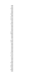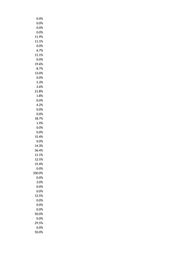 0.0% 0.0% 13.6% 0.0% 0.0% 0.0% 20.0% 0.0% 13.7% 14.3% 12.5% 5.0% 0.0% 12.5% 0.0% 0.0% 0.0% 0.0% 0.0% 25.0% 20.0% 0.0% 0.0% 0.0% 7.1% 21.2% 19.9% 0.0% 0.0% 0.0% 0.0% 0.0% 0.0% 0.0% 13.2% 6.7% 11.1% 0.0% 0.0% 0.0% 0.0% 25.0% 0.0% 33.3% 25.0% 0.0% 20.0% 0.0%