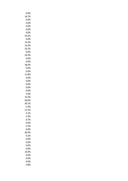 0.0% 16.7% 0.0% 0.0% 0.0% 0.0% 0.0% 24.2% 0.0% 14.3% 14.3% 23.1% 0.0% 33.3% 0.0% 0.0% 18.9% 0.0% 0.0% 11.8% 0.0% 0.0% 0.0% 0.0% 0.0% 5.0% 14.3% 40.0% 30.1% 5.9% 11.5% 9.1% 5.9% 6.7% 0.0% 5.9% 0.0% 20.9% 4.2% 0.0% 0.0% 0.0% 0.0% 14.0% 0.0% 0.0% 0.0% 4.8%