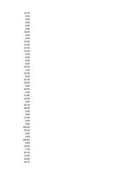 25.0% 37.4% 8.3% 18.2% 25.0% 40.0% 42.9% 61.5% 0.0% 14.3% 9.5% 33.3% 10.0% 30.7% 0.0% 0.0% 0.0% 0.0% 45.8% 0.0% 0.0% 0.0% 0.0% 33.3% 0.0% 7.7% 33.3% 6.3% 0.0% 8.3% 20.0% 22.2% 47.5% 33.3% 25.0% 6.1% 50.0% 16.7% 51.7% 13.0% 12.5% 0.0% 30.8% 13.3% 19.0% 0.0% 0.0% 31.4%