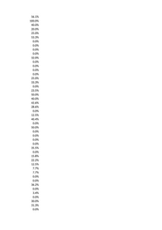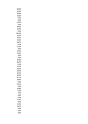 50.0% 0.0% 0.0% 20.0% 25.6% 0.0% 33.3% 50.0% 100.0% 0.0% 67.0% 25.0% 0.0% 0.0% 50.3% 0.0% 0.0% 25.8% 0.0% 0.0% 0.0% 100.0% 45.5% 0.0% 20.0% 51.0% 0.0% 8.3% 25.0% 0.0% 0.0% 66.7% 22.2% 0.0% 44.4% 52.6% 21.7% 0.0% 25.0% 45.6% 11.1% 50.0% 33.3% 46.5% 0.0% 0.0% 25.0% 0.0%