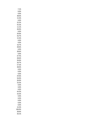 7.1% 0.0% 0.0% 38.0% 15.4% 0.0% 22.2% 45.3% 11.1% 20.0% 0.0% 20.0% 46.7% 15.4% 0.0% 0.0% 16.7% 48.0% 0.0% 28.6% 0.0% 47.9% 28.6% 50.0% 26.7% 57.3% 48.0% 0.0% 0.0% 0.0% 49.0% 50.0% 20.0% 33.3% 0.0% 0.0% 0.0% 44.3% 33.3% 0.0% 0.0% 0.0% 0.0% 0.0% 14.3% 100.0% 28.6% 50.1%