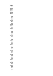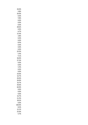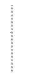 0.0% 0.0% 0.0% 0.0% 0.0% 0.0% 17.4% 0.0% 0.0% 0.0% 0.0% 0.0% 0.0% 0.0% 0.0% 0.0% 19.1% 0.0% 0.0% 100.0% 0.0% 5.0% 0.0% 0.0% 19.7% 0.0% 0.0% 0.0% 0.0% 0.0% 27.6% 0.0% 0.0% 0.0% 0.0% 0.0% 0.0% 0.0% 25.6% 11.1% 12.0% 35.0% 20.9% 18.2% 30.0% 10.4% 14.3% 0.0%