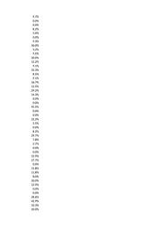 9.7% 0.0% 0.0% 8.2% 5.0% 0.0% 9.3% 36.0% 3.2% 9.5% 20.0% 12.2% 9.1% 33.3% 8.5% 9.1% 16.7% 12.5% 29.2% 14.3% 0.0% 0.0% 45.5% 0.0% 0.0% 22.2% 2.5% 0.0% 8.2% 29.7% 7.8% 5.7% 0.0% 0.0% 12.5% 27.7% 0.0% 15.8% 11.8% 8.0% 20.0% 12.5% 0.0% 0.0% 28.6% 42.9% 33.3% 20.0%