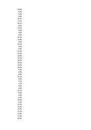 11.1% 50.0% 58.7% 12.5% 50.0% 50.6% 33.3% 0.0% 33.9% 0.0% 28.6% 50.0% 0.0% 0.0% 0.0% 15.4% 0.0% 25.0% 46.9% 0.0% 8.3% 25.0% 25.0% 16.7% 33.3% 23.8% 40.0% 33.3% 44.9% 10.5% 28.6% 27.8% 46.7% 14.3% 33.3% 16.7% 51.7% 0.0% 0.0% 33.3% 0.0% 0.0% 0.0% 42.7% 11.1% 0.0% 41.7% 45.3%