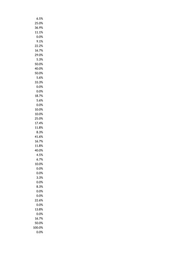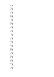 16.7% 27.7% 0.0% 14.8% 0.0% 15.4% 66.7% 31.3% 50.0% 15.2% 5.0% 0.0% 25.0% 10.0% 18.8% 0.0% 32.2% 43.1% 0.0% 16.7% 0.0% 0.0% 0.0% 0.0% 27.5% 14.3% 15.6% 8.3% 20.0% 28.6% 0.0% 23.1% 40.0% 20.0% 0.0% 38.5% 25.0% 50.0% 26.9% 16.7% 44.4% 34.3% 25.6% 7.1% 0.0% 0.0% 20.0% 9.1%
