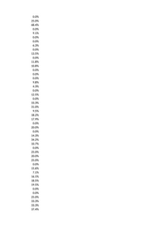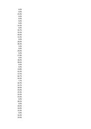 0.0% 0.0% 25.0% 0.0% 0.0% 0.0% 0.0% 14.3% 0.0% 35.7% 33.3% 40.0% 14.3% 0.0% 20.0% 28.3% 5.6% 0.0% 20.0% 0.0% 27.8% 0.0% 18.2% 28.6% 0.0% 0.0% 13.8% 42.9% 12.5% 66.7% 44.4% 7.7% 26.9% 14.7% 30.0% 25.0% 29.3% 33.3% 25.0% 0.0% 28.5% 0.0% 20.0% 10.0% 15.9% 0.0% 16.4% 29.0%