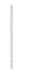 0.0% 10.0% 31.7% 36.6% 18.2% 9.5% 44.4% 13.3% 30.0% 75.0% 11.1% 13.6% 0.0% 20.0% 10.0% 5.6% 15.4% 41.7% 18.5% 0.0% 20.0% 0.0% 15.4% 0.0% 0.0% 14.6% 0.0% 0.0% 4.3% 18.8% 9.5% 12.5% 30.7% 13.6% 30.0% 28.6% 41.7% 30.8% 11.1% 23.8% 25.0% 36.7% 35.1% 23.8% 14.3% 20.0% 33.3% 36.8%