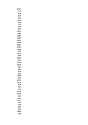 24.6% 7.7% 9.1% 0.0% 0.0% 10.5% 0.0% 0.0% 0.0% 0.0% 12.1% 8.8% 12.5% 15.8% 16.7% 12.5% 50.0% 37.8% 27.6% 9.7% 50.0% 4.8% 33.3% 0.0% 12.5% 23.3% 0.0% 9.8% 6.3% 7.1% 17.6% 0.0% 27.3% 26.7% 0.0% 7.7% 0.0% 50.0% 29.7% 0.0% 19.0% 15.0% 0.0% 0.0% 0.0% 0.0% 18.6% 0.0%