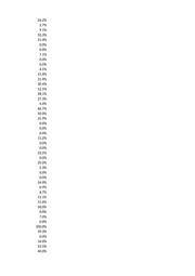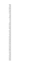 20.0% 6.7% 23.8% 5.7% 30.5% 12.7% 20.0% 0.0% 7.1% 14.7% 0.0% 0.0% 50.0% 24.2% 33.3% 30.0% 25.0% 40.1% 40.0% 28.6% 0.0% 23.5% 23.1% 21.1% 45.4% 28.1% 29.0% 0.0% 0.0% 31.0% 50.0% 50.0% 27.6% 25.0% 25.0% 0.0% 37.3% 29.5% 12.5% 8.3% 5.6% 40.0% 33.3% 26.7% 0.0% 6.7% 0.0% 7.7%
