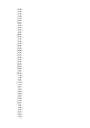 13.4% 3.3% 2.7% 0.0% 2.3% 25.0% 20.0% 8.3% 33.3% 0.0% 0.0% 38.4% 15.6% 6.7% 0.0% 33.3% 50.0% 13.3% 40.0% 13.3% 37.1% 19.6% 9.4% 45.5% 20.0% 10.0% 55.6% 0.0% 20.7% 7.5% 4.0% 9.5% 27.7% 2.5% 14.6% 5.0% 9.6% 10.0% 0.0% 0.0% 11.1% 11.5% 0.0% 0.0% 2.8% 23.1% 0.0% 2.8%