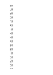 0.0% 40.0% 52.4% 10.0% 0.0% 0.0% 0.0% 20.0% 8.3% 55.6% 31.3% 0.0% 16.7% 55.7% 0.0% 20.0% 25.0% 0.0% 13.8% 0.0% 16.7% 38.9% 0.0% 25.0% 30.0% 26.7% 8.0% 13.0% 40.0% 0.0% 0.0% 17.4% 0.0% 14.3% 9.1% 33.3% 14.3% 38.4% 0.0% 6.3% 16.7% 11.1% 20.0% 0.0% 0.0% 9.5% 11.1% 33.3%