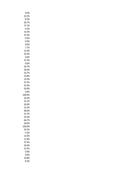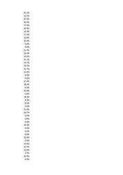 33.1% 12.5% 27.3% 46.4% 17.6% 35.6% 12.3% 27.3% 10.0% 25.0% 0.0% 0.0% 21.9% 22.2% 15.0% 21.1% 14.3% 33.5% 15.7% 23.3% 0.0% 0.0% 27.3% 18.4% 0.0% 50.0% 0.0% 16.4% 5.9% 0.0% 0.0% 21.0% 16.7% 0.0% 0.0% 0.0% 33.3% 0.0% 0.0% 0.0% 32.6% 0.0% 13.0% 12.5% 13.0% 7.7% 33.3% 0.0%