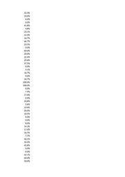 33.3% 10.0% 0.0% 0.0% 41.8% 4.8% 23.1% 14.3% 16.7% 66.7% 23.5% 0.0% 60.0% 20.0% 32.4% 22.6% 37.5% 0.0% 9.1% 16.7% 0.0% 16.7% 100.0% 100.0% 0.0% 7.9% 17.6% 0.0% 33.8% 5.6% 19.4% 20.0% 10.5% 0.0% 0.0% 8.0% 14.3% 17.4% 16.7% 7.7% 46.1% 10.2% 45.8% 0.0% 0.0% 42.1% 60.0% 50.0%