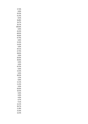 17.4% 0.0% 33.3% 41.9% 8.3% 36.8% 16.7% 35.7% 100.0% 0.0% 42.3% 68.4% 40.0% 47.9% 0.0% 15.4% 14.3% 0.0% 49.1% 27.9% 28.0% 0.0% 20.0% 30.0% 0.0% 0.0% 45.9% 0.0% 14.3% 0.0% 28.3% 2.5% 0.0% 11.1% 11.5% 0.0% 50.0% 10.5% 0.0% 0.0% 0.0% 6.7% 9.1% 12.1% 30.7% 11.8% 15.4% 12.5%