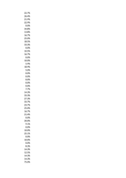 22.7% 26.4% 21.9% 22.9% 0.0% 34.8% 13.8% 16.7% 25.0% 18.5% 33.3% 0.0% 10.5% 16.7% 0.0% 10.0% 5.9% 18.9% 5.0% 0.0% 0.0% 0.0% 0.0% 0.0% 7.7% 14.3% 33.3% 27.3% 33.7% 23.7% 25.0% 16.7% 21.4% 0.0% 20.0% 9.1% 0.0% 10.0% 25.1% 0.0% 10.0% 0.0% 8.3% 14.3% 12.5% 14.3% 14.3% 75.0%