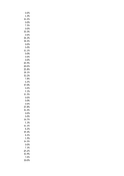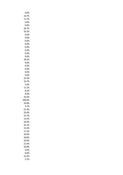 36.4% 0.0% 15.8% 12.5% 22.7% 31.6% 4.2% 23.1% 28.6% 16.0% 0.0% 0.0% 2.2% 16.9% 30.0% 16.9% 44.3% 16.2% 30.8% 25.0% 22.2% 20.0% 20.0% 24.0% 8.5% 4.0% 2.9% 23.4% 3.1% 12.9% 22.2% 8.7% 0.0% 0.0% 0.0% 2.6% 23.8% 7.5% 30.0% 2.4% 16.7% 0.0% 13.3% 0.0% 0.0% 6.3% 0.0% 0.0%