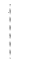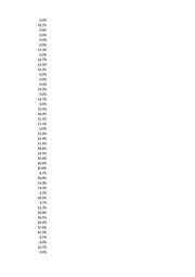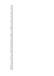 0.0% 0.0% 0.0% 41.0% 0.0% 25.0% 50.0% 0.0% 0.0% 0.0% 0.0% 0.0% 20.2% 0.0% 0.0% 33.3% 0.0% 0.0% 4.8% 14.3% 0.0% 22.9% 4.3% 14.3% 50.0% 20.0% 0.0% 0.0% 0.0% 6.3% 16.1% 6.1% 27.6% 5.5% 10.9% 30.0% 15.2% 8.3% 0.0% 0.0% 0.0% 0.0% 29.8% 0.0% 20.0% 0.0% 27.0% 0.0%