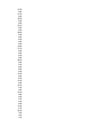 31.3% 0.0% 11.1% 0.0% 25.0% 0.0% 0.0% 23.1% 0.0% 0.0% 20.0% 0.0% 0.0% 0.0% 0.0% 0.0% 13.0% 11.1% 0.0% 0.0% 0.0% 0.0% 28.3% 5.0% 5.9% 0.0% 0.0% 0.0% 14.3% 0.0% 8.7% 14.3% 0.0% 16.7% 5.6% 4.3% 14.3% 9.8% 0.0% 7.7% 3.4% 0.0% 14.3% 5.7% 29.5% 7.5% 1.4% 7.1%