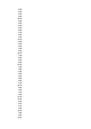 0.0% 6.3% 0.0% 0.0% 32.4% 0.0% 0.0% 0.0% 0.0% 0.0% 9.9% 0.0% 5.0% 12.5% 0.0% 0.0% 0.0% 3.6% 0.0% 16.7% 1.9% 0.0% 0.0% 0.0% 25.0% 3.2% 4.8% 4.8% 0.0% 0.0% 0.0% 0.0% 9.1% 16.7% 0.0% 0.0% 4.5% 4.0% 12.5% 13.3% 0.0% 8.7% 9.1% 0.0% 13.3% 1.8% 0.0% 15.0%