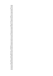 0.0% 0.0% 0.0% 0.0% 14.3% 14.5% 0.0% 0.0% 15.4% 0.0% 7.7% 22.0% 2.8% 13.3% 2.9% 0.0% 0.0% 26.8% 0.0% 0.0% 0.0% 0.0% 5.3% 26.4% 3.7% 0.0% 12.5% 16.7% 0.0% 36.4% 6.3% 21.1% 18.2% 23.1% 28.6% 20.0% 15.4% 6.7% 0.0% 0.0% 15.1% 2.0% 2.5% 0.0% 15.4% 0.0% 27.2% 0.0%