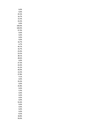 33.3% 41.1% 0.0% 8.3% 60.0% 44.4% 3.7% 4.0% 15.4% 20.0% 0.0% 51.6% 12.5% 66.7% 0.0% 60.0% 0.0% 33.3% 0.0% 0.0% 0.0% 27.6% 0.0% 22.2% 0.0% 16.7% 35.9% 0.0% 10.0% 0.0% 0.0% 0.0% 0.0% 39.4% 0.0% 0.0% 0.0% 38.0% 0.0% 21.4% 100.0% 66.7% 38.1% 0.0% 16.7% 28.6% 18.2% 0.0%