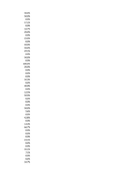 40.0% 50.0% 0.0% 57.1% 0.0% 16.7% 20.0% 0.0% 25.0% 0.0% 50.0% 50.0% 49.1% 0.0% 50.0% 0.0% 100.0% 20.0% 0.0% 0.0% 0.0% 35.3% 0.0% 40.0% 0.0% 12.5% 50.0% 0.0% 0.0% 0.0% 50.0% 5.6% 0.0% 42.8% 0.0% 13.3% 66.7% 0.0% 0.0% 0.0% 23.1% 0.0% 0.0% 35.1% 7.1% 0.0% 0.0% 34.7%