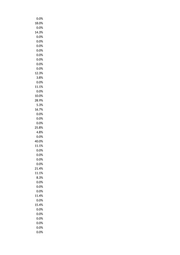 0.0% 18.0% 0.0% 14.3% 0.0% 0.0% 0.0% 0.0% 0.0% 0.0% 0.0% 0.0% 12.3% 3.8% 0.0% 11.1% 0.0% 10.0% 28.9% 5.3% 16.7% 0.0% 0.0% 0.0% 25.8% 4.8% 0.0% 40.0% 11.1% 0.0% 0.0% 0.0% 0.0% 21.4% 11.1% 8.3% 0.0% 0.0% 0.0% 11.4% 0.0% 15.4% 0.0% 0.0% 0.0% 0.0% 0.0% 0.0%