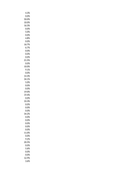 4.3% 0.0% 50.0% 10.0% 16.3% 0.0% 5.0% 0.0% 4.8% 0.0% 16.7% 6.7% 0.0% 0.0% 0.0% 21.5% 0.0% 10.0% 9.1% 0.0% 14.3% 34.1% 5.0% 0.0% 0.0% 19.0% 19.4% 0.0% 33.3% 0.0% 0.0% 0.0% 34.2% 0.0% 0.0% 0.0% 0.0% 0.0% 11.0% 0.0% 9.2% 20.5% 0.0% 5.6% 0.0% 0.0% 12.9% 3.6%