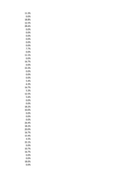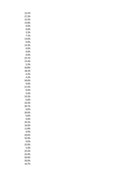 11.3% 0.0% 18.8% 12.5% 28.6% 0.0% 0.0% 0.0% 0.0% 0.0% 0.0% 7.7% 0.0% 11.1% 0.0% 16.7% 0.0% 33.3% 0.0% 0.0% 0.0% 5.4% 6.3% 16.7% 5.3% 12.5% 5.6% 0.0% 0.0% 18.2% 10.0% 0.0% 0.0% 0.0% 26.4% 18.2% 20.0% 16.7% 15.4% 4.5% 35.1% 0.0% 10.7% 16.7% 0.0% 0.0% 18.0% 0.0%