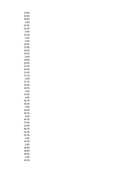 53.8% 30.8% 30.8% 0.0% 62.5% 33.3% 0.0% 33.3% 0.0% 0.0% 20.0% 27.8% 18.2% 35.9% 0.0% 34.8% 50.0% 31.3% 49.6% 15.4% 57.1% 0.0% 37.7% 10.0% 18.5% 0.0% 14.3% 0.0% 66.7% 18.2% 0.0% 20.0% 38.1% 0.0% 46.7% 75.0% 25.0% 48.7% 42.3% 33.3% 0.0% 42.9% 0.0% 20.0% 18.8% 20.0% 6.3% 40.2%