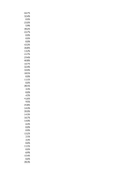 12.5% 4.8% 0.0% 0.0% 0.0% 20.0% 20.0% 0.0% 100.0% 25.0% 0.0% 16.7% 0.0% 0.0% 23.8% 21.2% 0.0% 16.7% 0.0% 11.1% 19.6% 0.0% 0.0% 0.0% 15.9% 25.0% 6.7% 0.0% 0.0% 7.7% 0.0% 0.0% 18.4% 6.3% 22.7% 0.0% 0.0% 20.5% 0.0% 0.0% 0.0% 0.0% 18.8% 0.0% 14.8% 6.7% 4.5% 0.0%