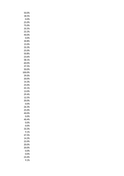 50.0% 18.5% 0.0% 25.0% 75.0% 35.5% 22.2% 40.0% 0.0% 30.8% 15.0% 33.3% 25.0% 50.8% 23.6% 58.1% 60.0% 37.5% 50.0% 100.0% 39.0% 20.0% 14.3% 25.0% 45.1% 13.0% 29.4% 12.5% 20.0% 0.0% 26.3% 25.0% 40.0% 0.0% 40.4% 0.0% 0.0% 33.3% 9.1% 47.5% 14.3% 22.0% 20.0% 20.0% 0.0% 0.0% 23.4% 9.1%