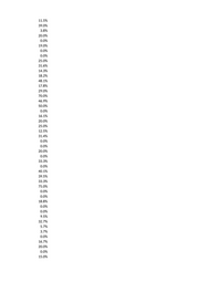 11.5% 39.0% 3.8% 20.0% 0.0% 19.0% 0.0% 0.0% 25.0% 31.6% 14.3% 18.2% 48.1% 17.8% 29.0% 70.0% 46.9% 50.0% 0.0% 16.1% 20.0% 25.0% 12.5% 31.4% 0.0% 0.0% 20.0% 0.0% 33.3% 0.0% 40.1% 39.5% 33.3% 75.0% 0.0% 0.0% 18.8% 0.0% 0.0% 9.5% 32.7% 5.7% 3.7% 0.0% 16.7% 20.0% 0.0% 15.0%