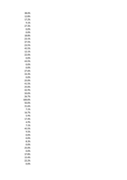 0.0% 0.0% 0.0% 0.0% 16.1% 4.2% 14.3% 0.0% 16.7% 0.0% 44.4% 0.0% 20.0% 57.0% 20.0% 28.6% 16.7% 27.3% 25.0% 0.0% 0.0% 0.0% 25.3% 7.6% 18.5% 25.0% 0.0% 0.0% 0.0% 6.7% 8.3% 0.0% 0.0% 37.4% 19.2% 22.2% 0.0% 33.3% 50.0% 20.0% 6.8% 25.0% 2.9% 38.4% 10.9% 25.0% 25.0% 9.5%