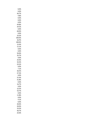 0.0% 48.2% 28.6% 33.3% 25.0% 0.0% 18.2% 0.0% 16.7% 33.3% 16.7% 0.0% 0.0% 16.7% 0.0% 25.0% 35.2% 0.0% 40.0% 0.0% 20.0% 33.3% 0.0% 0.0% 0.0% 39.8% 50.0% 50.0% 100.0% 0.0% 33.3% 100.0% 0.0% 0.0% 0.0% 35.6% 0.0% 0.0% 11.1% 0.0% 66.7% 51.9% 16.7% 0.0% 0.0% 28.6% 0.0% 0.0%