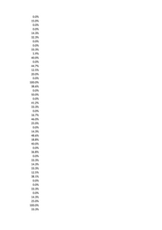 0.0% 15.0% 0.0% 0.0% 14.3% 32.3% 0.0% 0.0% 33.3% 5.9% 40.0% 0.0% 44.7% 12.5% 20.0% 0.0% 100.0% 38.6% 0.0% 50.0% 0.0% 41.2% 33.3% 0.0% 16.7% 46.0% 25.0% 0.0% 14.3% 48.6% 18.8% 40.0% 0.0% 36.8% 0.0% 33.3% 14.3% 33.3% 12.5% 38.1% 0.0% 0.0% 33.3% 0.0% 14.3% 25.0% 100.0% 33.3%