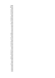 30.0% 100.0% 0.0% 52.0% 33.3% 17.6% 25.0% 0.0% 15.0% 50.0% 33.3% 37.6% 0.0% 10.5% 0.0% 0.0% 0.0% 5.0% 0.0% 0.0% 28.3% 10.0% 0.0% 27.5% 10.0% 0.0% 30.0% 34.5% 13.3% 33.3% 0.0% 0.0% 13.3% 15.4% 30.8% 23.5% 0.0% 50.8% 53.8% 0.0% 0.0% 0.0% 45.3% 0.0% 0.0% 0.0% 0.0% 0.0%