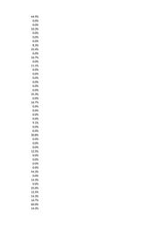 44.9% 0.0% 0.0% 33.3% 0.0% 0.0% 0.0% 8.3% 35.4% 0.0% 16.7% 0.0% 11.1% 0.0% 0.0% 0.0% 0.0% 0.0% 0.0% 35.3% 0.0% 16.7% 0.0% 0.0% 0.0% 0.0% 9.1% 0.0% 0.0% 30.8% 0.0% 0.0% 0.0% 12.5% 0.0% 0.0% 0.0% 0.0% 44.3% 0.0% 14.3% 0.0% 25.0% 12.5% 14.3% 16.7% 60.0% 14.3%