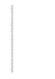 0.0% 0.0% 16.7% 0.0% 6.6% 0.0% 3.4% 7.7% 8.7% 0.0% 0.0% 0.0% 0.0% 16.7% 0.0% 15.2% 5.6% 4.8% 18.2% 9.1% 8.0% 0.0% 0.0% 0.0% 12.3% 0.0% 0.0% 14.3% 0.0% 0.0% 0.0% 0.0% 0.0% 0.0% 0.0% 0.0% 3.4% 4.2% 0.0% 0.0% 0.0% 0.0% 13.3% 0.0% 0.0% 12.8% 11.8% 0.0%