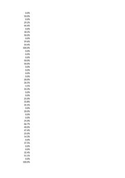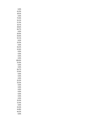 0.0% 0.0% 14.3% 50.0% 0.0% 33.3% 50.3% 50.0% 0.0% 0.0% 0.0% 0.0% 0.0% 0.0% 12.5% 0.0% 100.0% 35.0% 33.3% 55.6% 44.5% 44.4% 0.0% 0.0% 40.0% 66.7% 0.0% 0.0% 0.0% 0.0% 50.0% 0.0% 23.1% 0.0% 0.0% 28.2% 35.4% 20.0% 50.0% 0.0% 0.0% 0.0% 0.0% 0.0% 9.1% 22.2% 27.3% 0.0%