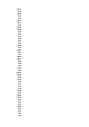 44.3% 0.0% 60.0% 0.0% 0.0% 44.4% 33.3% 0.0% 25.0% 36.4% 0.0% 0.0% 0.0% 0.0% 0.0% 0.0% 20.0% 0.0% 25.0% 0.0% 0.0% 38.8% 38.2% 0.0% 0.0% 0.0% 16.7% 0.0% 100.0% 50.0% 0.0% 33.3% 0.0% 0.0% 9.1% 0.0% 14.3% 0.0% 23.6% 30.5% 0.0% 0.0% 0.0% 20.0% 0.0% 0.0% 0.0% 0.0%