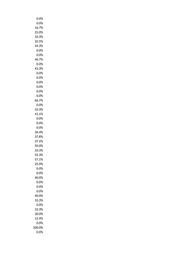 11.1% 0.0% 0.0% 0.0% 33.3% 22.2% 0.0% 60.0% 42.0% 0.0% 10.0% 0.0% 0.0% 0.0% 0.0% 14.3% 0.0% 0.0% 0.0% 0.0% 0.0% 100.0% 41.5% 52.4% 0.0% 0.0% 0.0% 30.0% 0.0% 0.0% 0.0% 0.0% 40.0% 33.3% 33.3% 44.4% 41.5% 0.0% 40.0% 0.0% 25.0% 0.0% 25.0% 20.0% 33.3% 25.0% 0.0% 0.0%