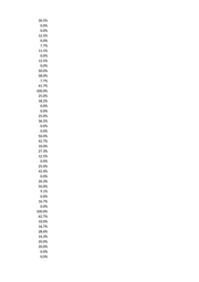 0.0% 22.2% 50.0% 0.0% 0.0% 0.0% 5.9% 29.2% 0.0% 0.0% 28.8% 0.0% 16.7% 27.3% 0.0% 50.7% 0.0% 22.2% 0.0% 0.0% 57.1% 0.0% 20.0% 48.2% 33.3% 42.9% 0.0% 0.0% 50.0% 0.0% 20.0% 0.0% 0.0% 37.4% 20.0% 15.8% 0.0% 11.1% 33.3% 5.9% 0.0% 6.7% 48.3% 0.0% 100.0% 8.7% 100.0% 25.0%