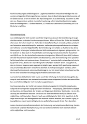 Seite 5 Nach Einschätzung des wildökologischen - jagdwirtschaftlichen Amtssachverständigen hat sich aus den vorliegenden Erfahrungen heraus erwiesen, dass die Beschränkung der Abschusszone auf ein Gebiet von ca. 10 km im Umkreis der Alpe Ostergunten als zu kleinräumig anzusehen ist. Mit dem o.a. Rissgeschehen wird die räumliche Erweiterung auf im Gutachten bestimmte Jagdge- biete der Wildregionen 1.1 Großes Walsertal, 1.2 Frödischtal-Laternsertal-Dünserberg und 1.3a Ebnitertal empfohlen. Alternativenprüfung: Aus wildökologischer Sicht wurden sowohl die Vergrämung als auch die Besenderung als taugli- che Alternativen zur letalen Entnahme ausgeschlossen. Allein auf Grund der Größe der Weideflä- chen sowie der hohen Anzahl von Tierherden im betroffenen Raum einerseits und des unbekann- ten Zeitpunktes eines Wolfsangriffes anderseits, stellen Vergrämungsmaßnahmen im vorliegen- den Fall keine wirkvolle Möglichkeit für die Verhinderung von Schäden an Nutztieren dar. Diese Meinung wird in Bezug auf schadenstiftende Wölfe mittlerweile als allgemein gültig erachtet. Un- ter anderem ist diese auch im Praxisleitfaden zur Erteilung artenschutzrechtlicher Ausnahmen nach §§ 45 und 45a des deutschen Bundesnaturschutzgesetzes (BNatschG) beim Wolf, insbeson- dere bei Nutztierrissen explizit erwähnt. Die Besenderung setzt die Installierung eines speziellen fachlich geschulten und praxiserprobten „Einsatzteams“ sowie das dafür notwendige technische Equipment voraus. Beides ist in Vorarlberg nicht vorhanden. Nachdem davon auszugehen ist, dass im hinteren Bregenzerwald gegenwärtig lediglich ganz wenige Wölfe gleichzeitig anwesend sind, erscheint das Besendern eines Tieres ebenfalls als nicht praxistauglich, weil dies, sofern überhaupt funktionierend, extrem zufallsabhängig ist, nur mit einem hohen Zeitaufwand und da- her mit einer zeitlichen Verschleppung des Problems verbunden wäre. Aus landwirtschaftsfachlicher Sicht wurde sowohl die Behirtung, die herdenschutztaugliche Zäu- nung als auch der Einsatz von Herdenschutzhunden aus nachfolgenden Gründen als undurchführ- bar, unverhältnismäßig oder nicht zumutbar ausgeschlossen: Das Rissereignis bzw. der Vorfall hat in einem Weideschutzgebiet (§ 5 WMVO) stattgefunden. Aufgrund der vorliegenden topographischen Verhältnisse – Hangneigung, Oberflächenrauhigkeit der Zaunlinie, der Wasserläufe, der Straßen und Wege sowie Wald bzw. Waldweide – ist eine Ein- zäunung der betroffenen Nutztiere zum Schutz vor dem betroffenen Wolf (§ 1) faktisch nicht möglich bzw. nicht zumutbar. Dies wird auch aus wildökologischer Sicht strikt abgelehnt, da flä- chige Abzäunungen von Weidegebieten die Mobilität anderer Wildtiere, als auch den Zugang zu Äsungsflächen, massiv beeinträchtigt und eine große Gefahrenquelle für die Tiere darstellen. Andere Herdenschutzmaßnahmen abseits der Einzäunung, wie beispielsweise Behirtung, Herden- schutzhunde und/oder Nachtpferchung, sind aus landwirtschaftlicher Sicht ebenfalls faktisch nicht möglich bzw. nicht zumutbar.