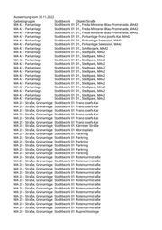 Auswertung vom 30.11.2022 Gebietsgruppe Stadtbezirk Objekt/Straße MA 42 - Parkanlage Stadtbezirk 01 01., Freda-Meissner-Blau-Promenade, MA42 MA 42 - Parkanlage Stadtbezirk 01 01., Freda-Meissner-Blau-Promenade, MA42 MA 42 - Parkanlage Stadtbezirk 01 01., Freda-Meissner-Blau-Promenade, MA42 MA 42 - Parkanlage Stadtbezirk 01 01., Parkanlage Franz-Josefs-Kai, MA42 MA 42 - Parkanlage Stadtbezirk 01 01., Parkanlage Secession, MA42 MA 42 - Parkanlage Stadtbezirk 01 01., Parkanlage Secession, MA42 MA 42 - Parkanlage Stadtbezirk 01 01., Schillerpark, MA42 MA 42 - Parkanlage Stadtbezirk 01 01., Stadtpark, MA42 MA 42 - Parkanlage Stadtbezirk 01 01., Stadtpark, MA42 MA 42 - Parkanlage Stadtbezirk 01 01., Stadtpark, MA42 MA 42 - Parkanlage Stadtbezirk 01 01., Stadtpark, MA42 MA 42 - Parkanlage Stadtbezirk 01 01., Stadtpark, MA42 MA 42 - Parkanlage Stadtbezirk 01 01., Stadtpark, MA42 MA 42 - Parkanlage Stadtbezirk 01 01., Stadtpark, MA42 MA 42 - Parkanlage Stadtbezirk 01 01., Stadtpark, MA42 MA 42 - Parkanlage Stadtbezirk 01 01., Stadtpark, MA42 MA 42 - Parkanlage Stadtbezirk 01 01., Stadtpark, MA42 MA 42 - Parkanlage Stadtbezirk 01 01., Stadtpark, MA42 MA 42 - Parkanlage Stadtbezirk 01 01., Stadtpark, MA42 MA 42 - Parkanlage Stadtbezirk 01 01., Stadtpark, MA42 MA 28 - Straße, Grünanlage Stadtbezirk 01 Franz-Josefs-Kai MA 28 - Straße, Grünanlage Stadtbezirk 01 Franz-Josefs-Kai MA 28 - Straße, Grünanlage Stadtbezirk 01 Franz-Josefs-Kai MA 28 - Straße, Grünanlage Stadtbezirk 01 Franz-Josefs-Kai MA 28 - Straße, Grünanlage Stadtbezirk 01 Franz-Josefs-Kai MA 28 - Straße, Grünanlage Stadtbezirk 01 Franz-Josefs-Kai MA 28 - Straße, Grünanlage Stadtbezirk 01 Kärntner Straße MA 28 - Straße, Grünanlage Stadtbezirk 01 Morzinplatz MA 28 - Straße, Grünanlage Stadtbezirk 01 Parkring MA 28 - Straße, Grünanlage Stadtbezirk 01 Parkring MA 28 - Straße, Grünanlage Stadtbezirk 01 Parkring MA 28 - Straße, Grünanlage Stadtbezirk 01 Parkring MA 28 - Straße, Grünanlage Stadtbezirk 01 Parkring MA 28 - Straße, Grünanlage Stadtbezirk 01 Parkring MA 28 - Straße, Grünanlage Stadtbezirk 01 Rotenturmstraße MA 28 - Straße, Grünanlage Stadtbezirk 01 Rotenturmstraße MA 28 - Straße, Grünanlage Stadtbezirk 01 Rotenturmstraße MA 28 - Straße, Grünanlage Stadtbezirk 01 Rotenturmstraße MA 28 - Straße, Grünanlage Stadtbezirk 01 Rotenturmstraße MA 28 - Straße, Grünanlage Stadtbezirk 01 Rotenturmstraße MA 28 - Straße, Grünanlage Stadtbezirk 01 Rotenturmstraße MA 28 - Straße, Grünanlage Stadtbezirk 01 Rotenturmstraße MA 28 - Straße, Grünanlage Stadtbezirk 01 Rotenturmstraße MA 28 - Straße, Grünanlage Stadtbezirk 01 Rotenturmstraße MA 28 - Straße, Grünanlage Stadtbezirk 01 Rotenturmstraße MA 28 - Straße, Grünanlage Stadtbezirk 01 Rotenturmstraße MA 28 - Straße, Grünanlage Stadtbezirk 01 Rotenturmstraße MA 28 - Straße, Grünanlage Stadtbezirk 01 Rotenturmstraße MA 28 - Straße, Grünanlage Stadtbezirk 01 Ruprechtsstiege