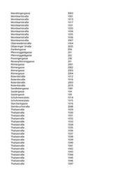 Maroltingergasse 3003 Montleartstraße 1001 Montleartstraße 1013 Montleartstraße 1017 Montleartstraße 1031 Montleartstraße 1033 Montleartstraße 1034 Montleartstraße 1035 Montleartstraße 1036 Montleartstraße 2067 Oberwiedenstraße 1054 Ottakringer Straße 2035 Panikengasse 204 Pfenninggeldgasse 201 Pfenninggeldgasse 202 Possingergasse 236 Reizenpfenninggasse 201 Römergasse 2001 Römergasse 2002 Römergasse 2003 Römergasse 2004 Roterdstraße 1012 Roterdstraße 1016 Roterdstraße 2003 Roterdstraße 2016 Sandleitengasse 1081 Sautergasse 104 Sautergasse 109 Schuhmeierplatz 1014 Schuhmeierplatz 1015 Starchantgasse 1016 Steinbruchstraße 2048 Thaliastraße 1029 Thaliastraße 1030 Thaliastraße 1031 Thaliastraße 1032 Thaliastraße 1033 Thaliastraße 1034 Thaliastraße 1035 Thaliastraße 1036 Thaliastraße 1037 Thaliastraße 1038 Thaliastraße 1039 Thaliastraße 1040 Thaliastraße 1041 Thaliastraße 1042 Thaliastraße 1043 Thaliastraße 1044 Thaliastraße 1045 Thaliastraße 1046 Thaliastraße 1047