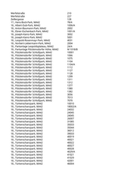 Werfelstraße 210 Werfelstraße 227 Zeillergasse 128 17., Hans-Bock-Park, MA42 78/A 18., Albert-Dub-Park, MA42 1006/A 18., Anton-Baumann-Park, MA42 2002 18., Ebner-Eschenbach-Park, MA42 1001/A 18., Joseph-Kainz-Park, MA42 3002 18., Joseph-Kainz-Park, MA42 5001 18., Leopold-Rosenmayr-Park, MA42 4031 18., Norbert-Liebermann-Park, MA42 2004 18., Parkanlage Leopoldsplateau, MA42 24/A 18., Parkanlage Pötzleinsdorfer Höhe, MA42 M 1018/B 18., Pötzleinsdorfer Schloßpark, MA42 10001 18., Pötzleinsdorfer Schloßpark, MA42 1066 18., Pötzleinsdorfer Schloßpark, MA42 1075 18., Pötzleinsdorfer Schloßpark, MA42 1104 18., Pötzleinsdorfer Schloßpark, MA42 1104/A 18., Pötzleinsdorfer Schloßpark, MA42 1112 18., Pötzleinsdorfer Schloßpark, MA42 1127 18., Pötzleinsdorfer Schloßpark, MA42 1128 18., Pötzleinsdorfer Schloßpark, MA42 1299 18., Pötzleinsdorfer Schloßpark, MA42 1311 18., Pötzleinsdorfer Schloßpark, MA42 1312 18., Pötzleinsdorfer Schloßpark, MA42 1377 18., Pötzleinsdorfer Schloßpark, MA42 1380 18., Pötzleinsdorfer Schloßpark, MA42 1382 18., Pötzleinsdorfer Schloßpark, MA42 3056 18., Pötzleinsdorfer Schloßpark, MA42 7013 18., Pötzleinsdorfer Schloßpark, MA42 7070 18., Türkenschanzpark, MA42 10010 18., Türkenschanzpark, MA42 18002/A 18., Türkenschanzpark, MA42 24032 18., Türkenschanzpark, MA42 24045 18., Türkenschanzpark, MA42 24045 18., Türkenschanzpark, MA42 26007 18., Türkenschanzpark, MA42 31085 18., Türkenschanzpark, MA42 35033 18., Türkenschanzpark, MA42 35044 18., Türkenschanzpark, MA42 36012 18., Türkenschanzpark, MA42 39033 18., Türkenschanzpark, MA42 40019 18., Türkenschanzpark, MA42 40021 18., Türkenschanzpark, MA42 40022 18., Türkenschanzpark, MA42 40027 18., Türkenschanzpark, MA42 40028 18., Türkenschanzpark, MA42 4029/A 18., Türkenschanzpark, MA42 41021 18., Türkenschanzpark, MA42 41029 18., Türkenschanzpark, MA42 42001 18., Türkenschanzpark, MA42 46004