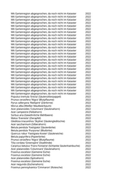 Mit Gartenregion abgesprochen, da noch nicht im Kataster 2022 Mit Gartenregion abgesprochen, da noch nicht im Kataster 2022 Mit Gartenregion abgesprochen, da noch nicht im Kataster 2022 Mit Gartenregion abgesprochen, da noch nicht im Kataster 2022 Mit Gartenregion abgesprochen, da noch nicht im Kataster 2022 Mit Gartenregion abgesprochen, da noch nicht im Kataster 2022 Mit Gartenregion abgesprochen, da noch nicht im Kataster 2022 Mit Gartenregion abgesprochen, da noch nicht im Kataster 2022 Mit Gartenregion abgesprochen, da noch nicht im Kataster 2022 Mit Gartenregion abgesprochen, da noch nicht im Kataster 2022 Mit Gartenregion abgesprochen, da noch nicht im Kataster 2022 Mit Gartenregion abgesprochen, da noch nicht im Kataster 2022 Mit Gartenregion abgesprochen, da noch nicht im Kataster 2022 Mit Gartenregion abgesprochen, da noch nicht im Kataster 2022 Mit Gartenregion abgesprochen, da noch nicht im Kataster 2022 Mit Gartenregion abgesprochen, da noch nicht im Kataster 2022 Mit Gartenregion abgesprochen, da noch nicht im Kataster 2022 Mit Gartenregion abgesprochen, da noch nicht im Kataster 2022 Mit Gartenregion abgesprochen, da noch nicht im Kataster 2022 Mit Gartenregion abgesprochen, da noch nicht im Kataster 2022 Mit Gartenregion abgesprochen, da noch nicht im Kataster 2022 Mit Gartenregion abgesprochen, da noch nicht im Kataster 2022 Mit Gartenregion abgesprochen, da noch nicht im Kataster 2022 Mit Gartenregion abgesprochen, da noch nicht im Kataster 2022 Mit Gartenregion abgesprochen, da noch nicht im Kataster 2022 Mit Gartenregion abgesprochen, da noch nicht im Kataster 2022 Mit Gartenregion abgesprochen, da noch nicht im Kataster 2022 Populus tremula 'Erecta' (Säulenzitterpappel) 2022 Prunus cerasifera 'Nigra' (Blutpflaume) 2022 Pyrus calleryana 'Redspire' (Zierbirne) 2022 Morus alba (Weißer Maulbeerbaum) 2022 Acer platanoides 'Columnare' (Säulenahorn) 2022 Acer campestre (Feldahorn) 2022 Sorbus aria (Gewöhnliche Mehlbeere) 2022 Malus 'Evereste' (Zierapfel) 2022 Gleditsia triacanthos 'Skyline' (Säulengleditschie) 2022 Acer saccharinum (Silberahorn) 2022 Betula pendula 'Fastigiata' (Säulenbirke) 2022 Betula pendula 'Purpurea' (Blutbirke) 2022 Quercus robur 'Fastigiata Koster' (Säuleneiche) 2022 Betula papyrifera (Papierbirke) 2022 Prunus cerasifera 'Nigra' (Blutpflaume) 2022 Tilia cordata 'Greenspire' (Stadtlinde) 2022 Carpinus betulus 'Frans Fontaine' (Schlanke Säulenhainbuche) 2022 Acer platanoides 'Columnare' (Säulenahorn) 2022 Fraxinus excelsior (Gemeine Esche) 2022 Fraxinus excelsior (Gemeine Esche) 2022 Acer platanoides (Spitzahorn) 2022 Fraxinus excelsior (Gemeine Esche) 2022 Acer negundo (Eschenahorn) 2022 Fraxinus pennsylvanica 'Cimmaron' (Rotesche) 2022