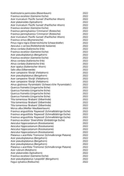 Koelreuteria paniculata (Blasenbaum) 2022 Fraxinus excelsior (Gemeine Esche) 2022 Acer truncatum 'Pacific Sunset' (Pazifischer Ahorn) 2022 Acer platanoides (Spitzahorn) 2022 Acer truncatum 'Pacific Sunset' (Pazifischer Ahorn) 2022 Fraxinus excelsior (Gemeine Esche) 2022 Fraxinus pennsylvanica 'Cimmaron' (Rotesche) 2022 Fraxinus pennsylvanica 'Cimmaron' (Rotesche) 2022 Acer truncatum 'Pacific Sunset' (Pazifischer Ahorn) 2022 Fraxinus ornus (Blumenesche) 2022 Pinus nigra nigra (Österreichische Schwarzkiefer) 2022 Aesculus x carnea (Rotblühende Kastanie) 2022 Alnus cordata (Italienische Erle) 2022 Fraxinus excelsior (Gemeine Esche) 2022 Acer pseudoplatanus (Bergahorn) 2022 Fraxinus excelsior (Gemeine Esche) 2022 Alnus cordata (Italienische Erle) 2022 Alnus cordata (Italienische Erle) 2022 Acer opalus (Italienischer Ahorn) 2022 Salix alba (Silberweide) 2022 Acer campestre 'Elsrijk' (Feldahorn) 2022 Acer pseudoplatanus (Bergahorn) 2022 Acer campestre 'Elsrijk' (Feldahorn) 2022 Acer campestre 'Elsrijk' (Feldahorn) 2022 Alnus glutinosa 'Pyramidalis' (Schwarz-Erle 'Pyramidalis') 2022 Quercus frainetto (Ungarische Eiche) 2022 Quercus frainetto (Ungarische Eiche) 2022 Quercus frainetto (Ungarische Eiche) 2022 Quercus frainetto (Ungarische Eiche) 2022 Tilia tomentosa 'Brabant' (Silberlinde) 2022 Tilia tomentosa 'Brabant' (Silberlinde) 2022 Tilia tomentosa 'Brabant' (Silberlinde) 2022 Morus alba (Weißer Maulbeerbaum) 2022 Fraxinus angustifolia 'Raywood' (Schmalblättrige Esche) 2022 Fraxinus angustifolia 'Raywood' (Schmalblättrige Esche) 2022 Fraxinus angustifolia 'Raywood' (Schmalblättrige Esche) 2022 Fraxinus excelsior 'Diversifolia' (Einblättrige Esche) 2022 Aesculus hippocastanum (Rosskastanie) 2022 Aesculus hippocastanum (Rosskastanie) 2022 Aesculus hippocastanum (Rosskastanie) 2022 Aesculus hippocastanum (Rosskastanie) 2022 Platanus x acerifolia 'Tremonia' (Schmalkronige Platane) 2022 Acer pseudoplatanus (Bergahorn) 2022 Acer pseudoplatanus (Bergahorn) 2022 Acer pseudoplatanus (Bergahorn) 2022 Platanus x acerifolia 'Tremonia' (Schmalkronige Platane) 2022 Acer rubrum (Rotahorn) 2022 Acer platanoides (Spitzahorn) 2022 Fraxinus excelsior (Gemeine Esche) 2022 Acer pseudoplatanus 'Leopoldii' (Bergahorn) 2022 Fagus sylvatica (Rotbuche) 2022